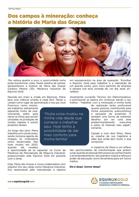 Article • 20th December 2024 Journal Equinox Gold: Vozes da Gente From the Fields to Mining: Meet Maria das Graças' Story